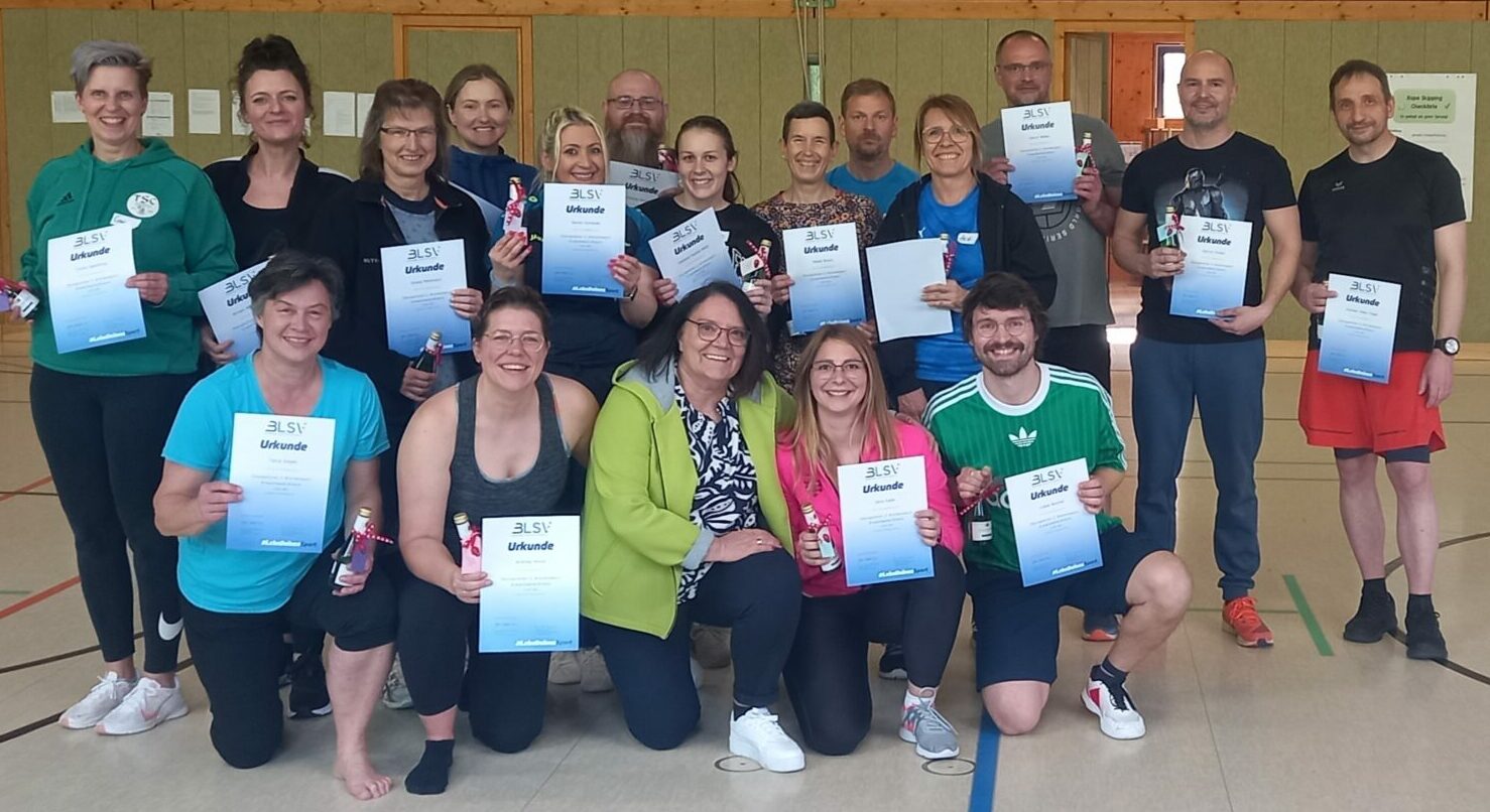 Die Wochenend-Ausbildung zum Übungsleiter‑C Breitensport Erwachsene/Ältere des Bezirkes Oberfranken, begann am 02.03.2024 und schloss mit der praktischen Prüfung am 04.05.2024, unter der Aufsicht von Bezirkslehrreferentin Renate Kupijai und Lehrteam-Mitglied Rainer Skutschik, ab.